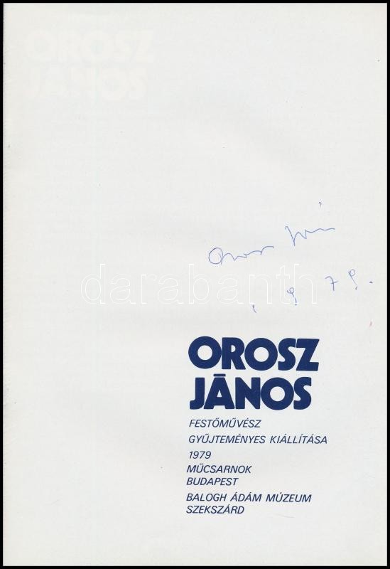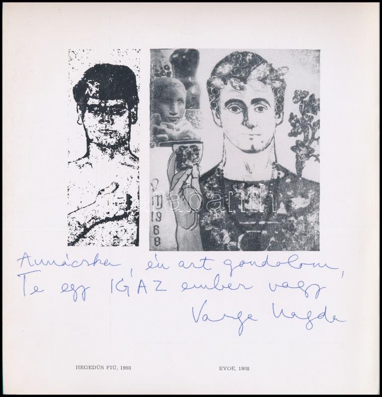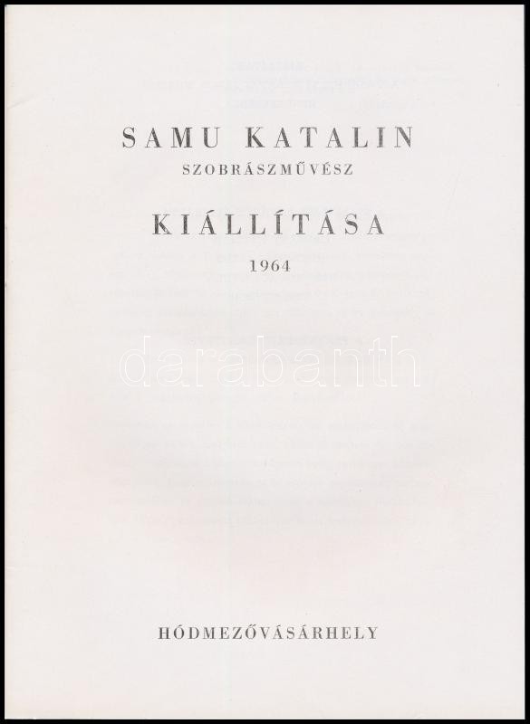 Vegyes katalógus tétel, egy kivételével aláírt, 5 db: Samu Katalin szobrászművész kiállítása. Hódmezővásárhely, 1964, Tornyai János Múzeum. Kiadói papírkötés. Samu Katalin. Bp.,1966, (Nm. Noymdaipari-ny.) Kiadói papírkötés, a hátoldalán tollas jegyzettel. Megjelent 500 példányban. A művész, Samu Katalin (1934-2011) által aláírt példány, dátumozva. Gábor Marianne kiállítása a Vigadó Galériában. Bp.,1985, Vigadó Galéria. Kiadói papírkötés. A művész, Gábor Marianne (1917-2004) által Földes Anna (1930-2017) író, újságíró, kritikus, irodalomtörténész, egyetemi tanárnak dedikált példány. Varga Magda festőművész kiállítása. Bp.,1968, Magyar Hirdető. Kiadói papírkötés. A művész, Varga Magda (1921-1998) által Földes Anna (1930-2017) író, újságíró, kritikus, irodalomtörténész, egyetemi tanárnak dedikált példány. Orosz János festművész gyűjteményes kiállítása. Bp.,1979,(Szekszárdi Nyomda-ny.) Kiadói papírkötés. A művész, Orosz János (1932-) által aláírt példány.