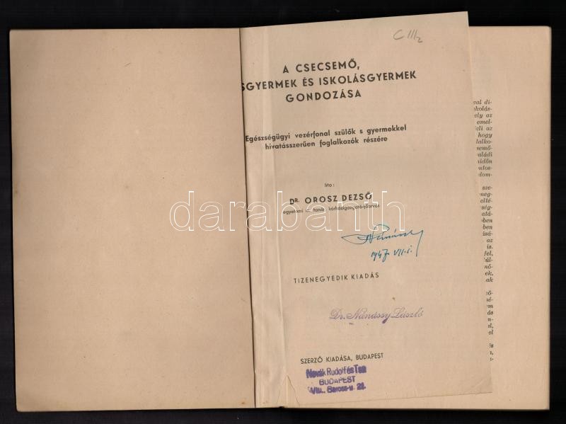 Dr. Orosz Dezső:A csecsemő, kisgyermek és iskolásgyermek gondozása. Egészségügyi vezérfonal szülők és gyermekkel hivatásszerűen foglalkozók részére. Bp.,é.n., Szerzői kiadás. Tizenegyedik kiadás. Kiadói papírkötés.