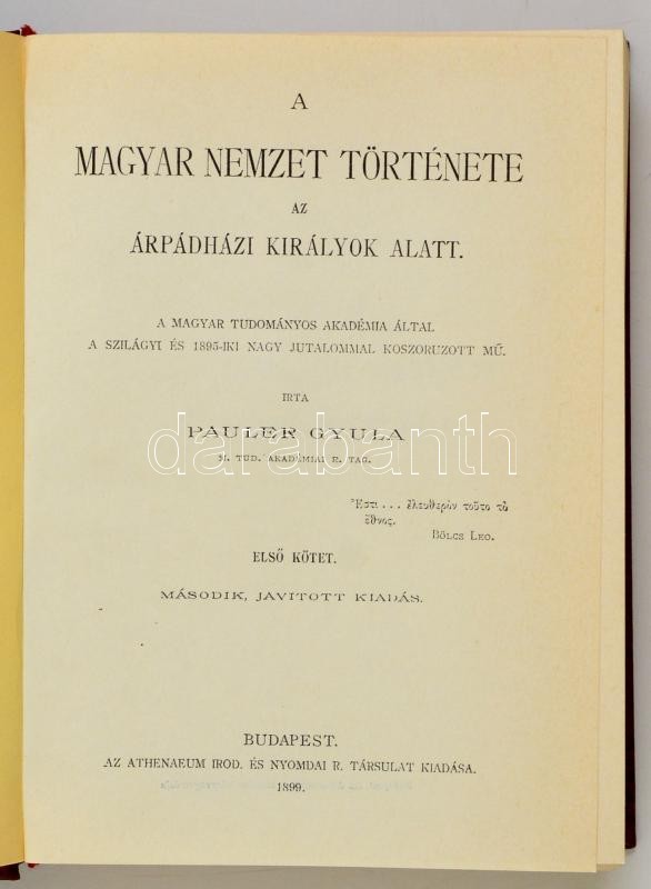 Leírás: Pauler Gyula: A magyar nemzet története az Árpád-házi királyok alatt. I.-II. kötet. Bp., 1984, ÁKV. Kiadói aranyozott műbőr kötésben. Reprint kiadás.