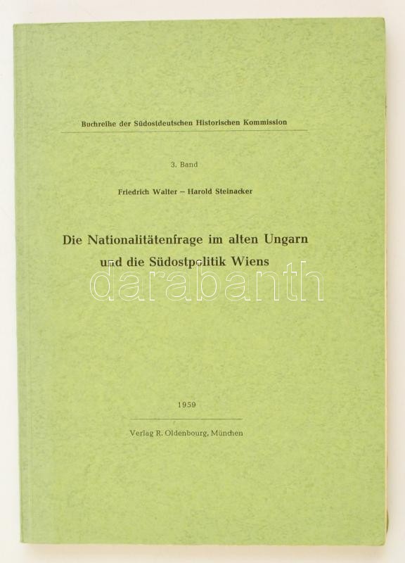Walter, Friedrich - Steinacker, Harold: Die Nationalitätenfrage im alten Ungarn und die Südostpolitik Wiens. München, 1959, R. Oldebourg. Papírkötésben, jó állapotban.