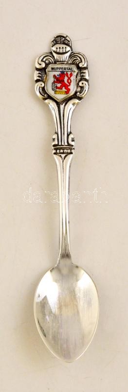 Leírás: Ezüst(Ag) "Wuppertal" címeres zománcozott kiskanál, jelzett, h: 11 cm, bruttó: 12,1 g