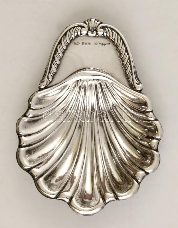 Leírás: Ezüst(Ag) kagylómintás tálka, jelzett, 8,5×6,4 cm, nettó: 17,8 g