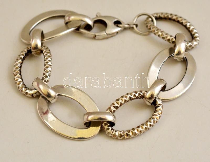 Leírás: Ezüst(Ag) ovális, nagy szemű karkötő, jelzett, h: 18,5 cm, nettó: 16,9 g