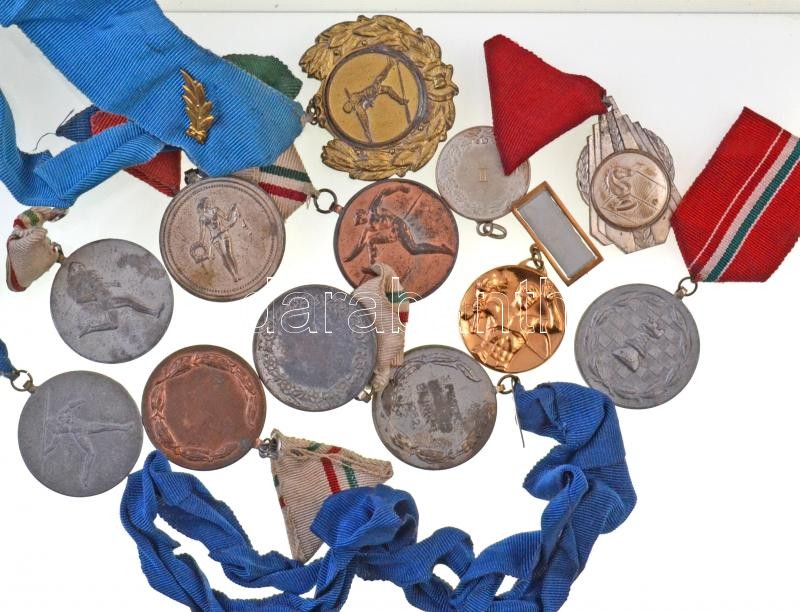 Leírás: ~1950-1960. Kis doboznyi vegyes sport díjérem tétel, mind eredeti szalagon, többségében hátlapon gravírozással T:vegyes