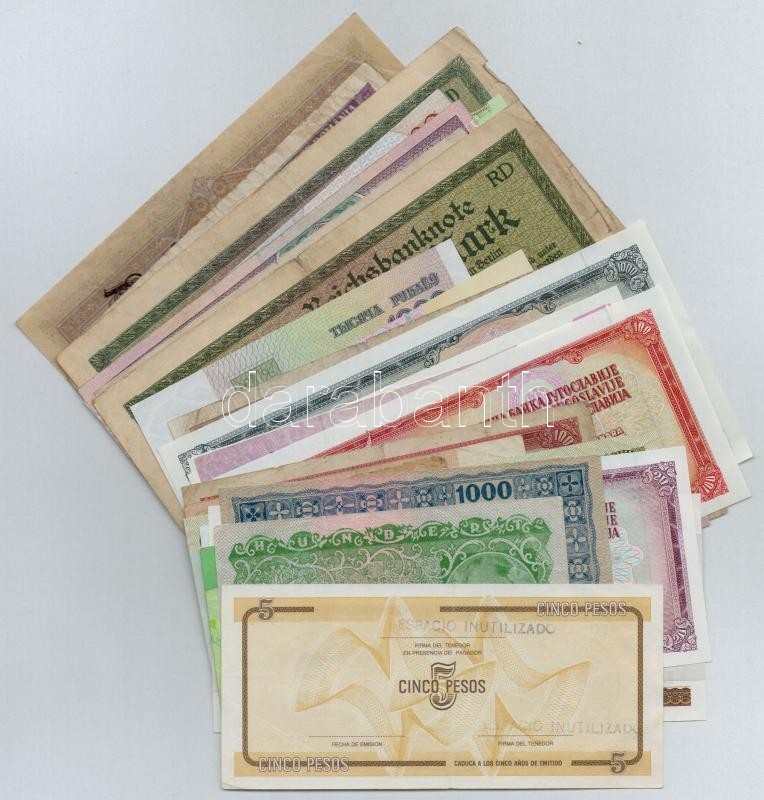 ~40db-os vegyes bankjegy tétel, közte Svájc, Argentína, Franciaország, Horvátország, Ukrajna, Szudán, Jugoszlávia, Egyesült Arab Emirátusok és Észak-Korea T:vegyes ~40pcs of various banknotes, including Switzerland, Argentina, France, Croatia, Ukraine, Sudan, Yugoslavia, United Arab Emirates and North Korea C:mixed