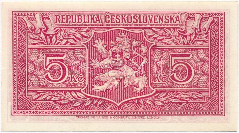 Czechoslovakia 1945. 5 Korun with "S" as specimen perforation C:UNC