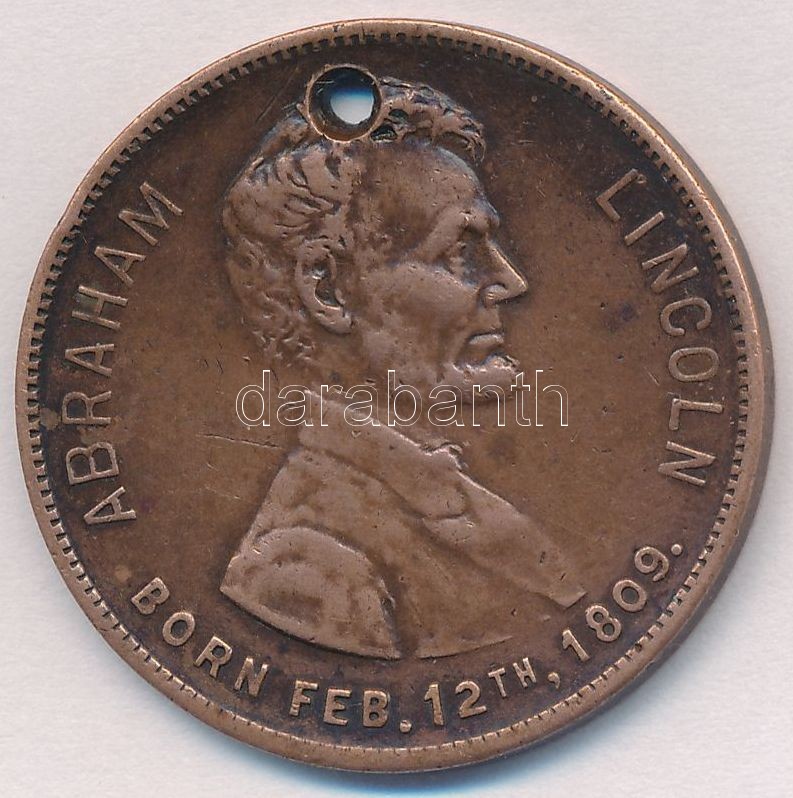 USA ~1909. "Abraham Lincoln / Lincoln Centennial Medal" Br commemorative medal (32mm) C:VF,F hole