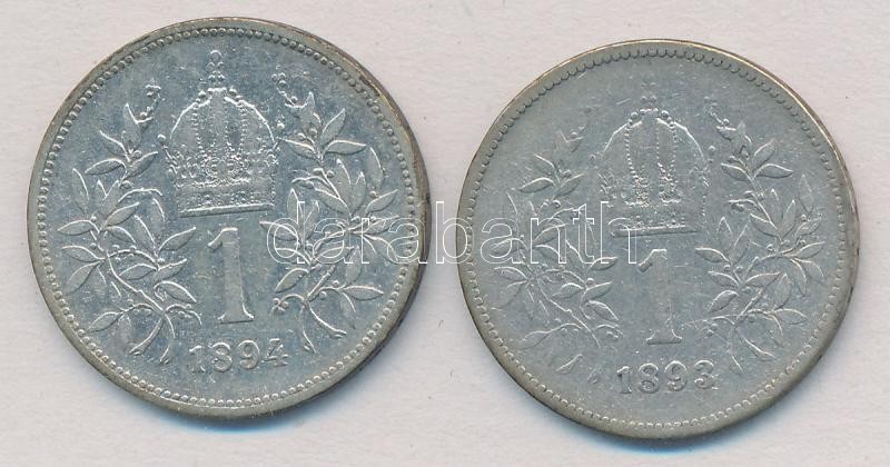 Leírás: Ausztria 1893-1894. 1K Ag "Ferenc József" (2xklf) T:3 patina