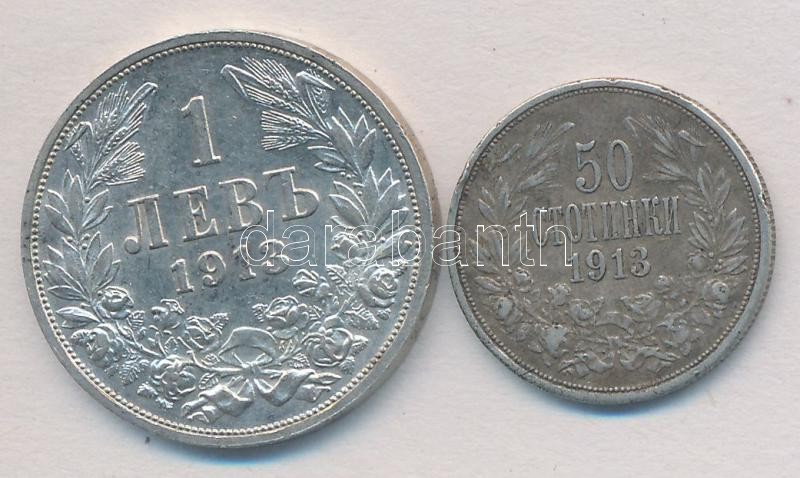 Bulgaria 1913. 50 Stotinki Ag + 1 Lev Ag C:XF,AU