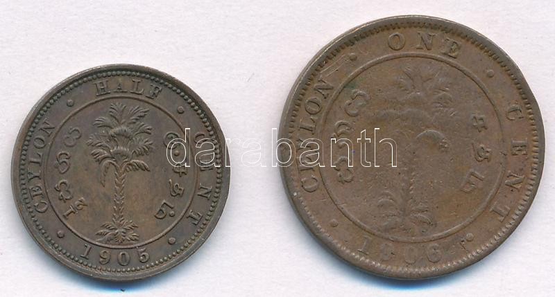 Leírás: Ceylon 1905. 1/2p Cu + 1906. 1p Cu T:2-3