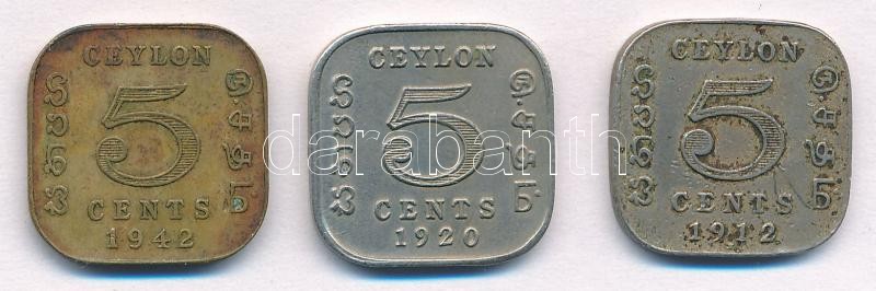 Leírás: Ceylon 1912H 5c Cu-Ni + 1920. 5c Cu-Ni + 1942. 5c Ni-sárgaréz T:2,2- patina