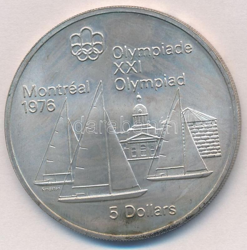 Canada 1973. 5 Dollars Ag "Montreal Olympic Games - Sailboat 'Kingston'" C:AU small patina