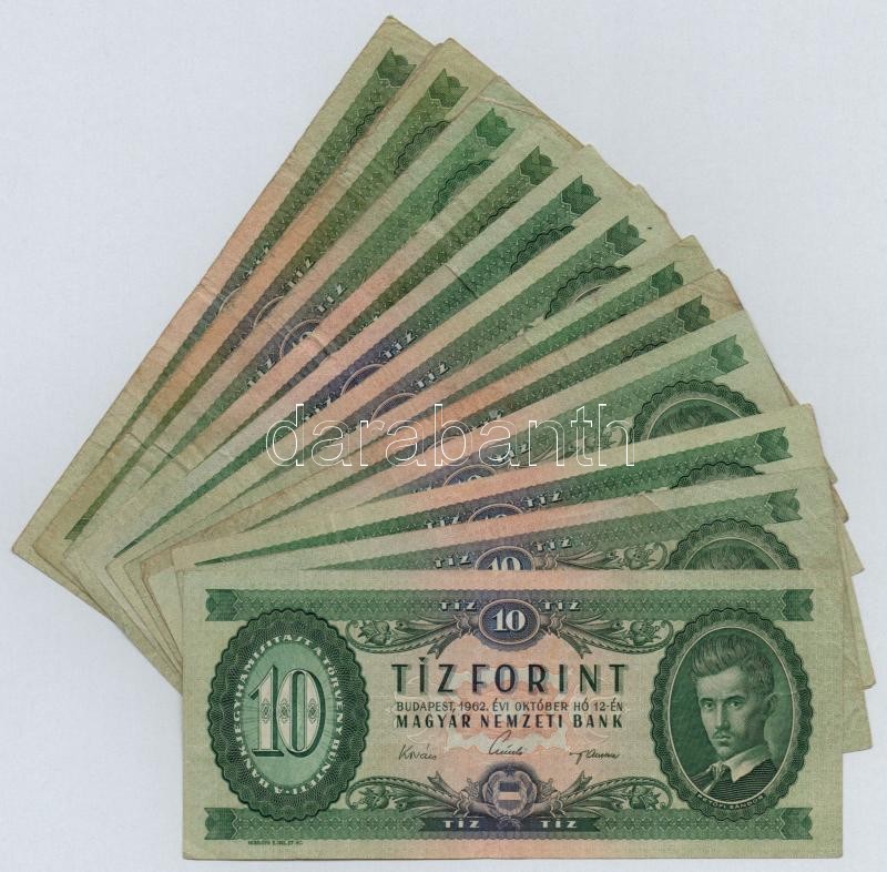 1962-1969. 10Ft (15x) T:III,III- https://www.darabanth.com/hu/327-Gyorsarveres/327.0/Numizmatika/Magyar-bankjegyek~2000007/1962-1969-10Ft-15x-TIII-III-~II1820256