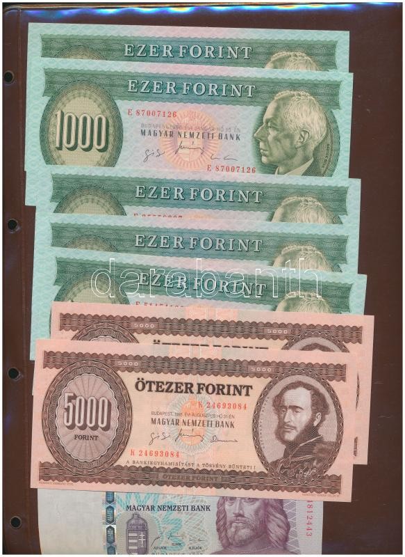 Vegyes papÃr és fémpénz gyűjtemény, rendkÃvül tartalmas forint résszel közte nagy számban 500, 1000 , 5000 és 10.000 forintos cÃmletek is, néhány sorszámkövetÅ‘ illetve közeli sorszámú darabbal + szlovák és vatikáni forgalmi sorok, két mappában. Minden oldalról készült kép!