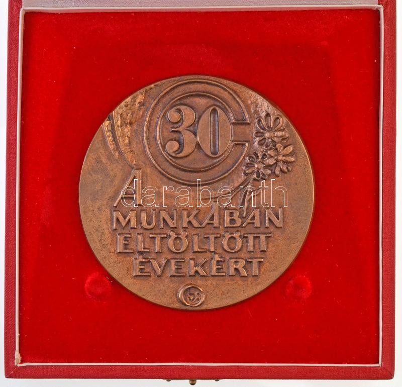 Leírás: ~1970-1980. "A Munkában eltöltött évekért" egyoldalas Br plakett, eredeti tokban "Centrum Áruházak 30" kitűzővel (96mm) T:1-