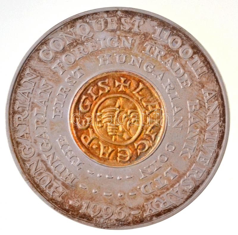 Lebó Ferenc (1960-) 1996. "MKB - Honfoglalás 1100. évfordulójára - Első magyar pénzérme" Ag emlékérem eredeti MKB tokban, ismertetővel (30,9g/0.925/42,5mm) T:2 (eredetileg PP) a tok sérült