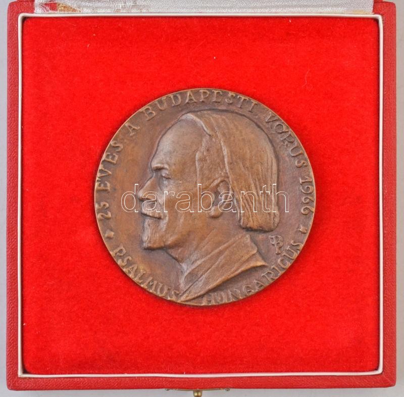 Leírás: Pátzay Pál (1896-1979) 1966. "25 éves a Budapesti Kórus" Br emlékérem dísztokban (71mm) T:1-,2