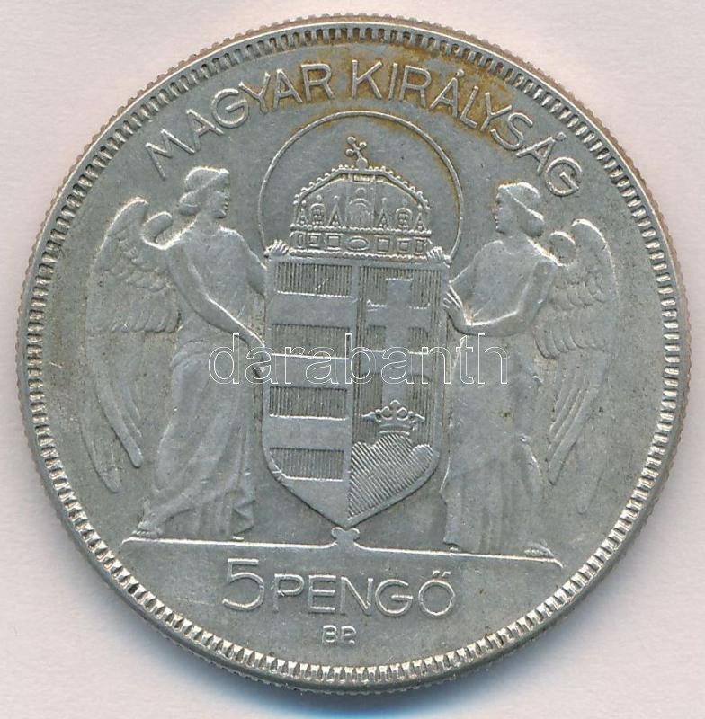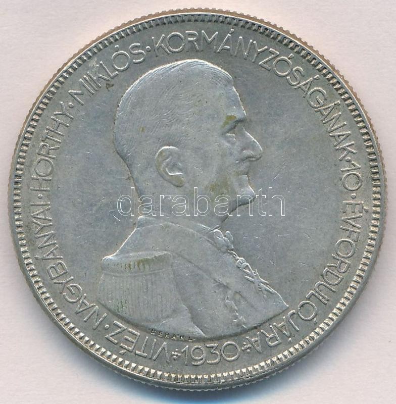 Leírás: 1930. 5P Ag "Horthy jobbra" T:2