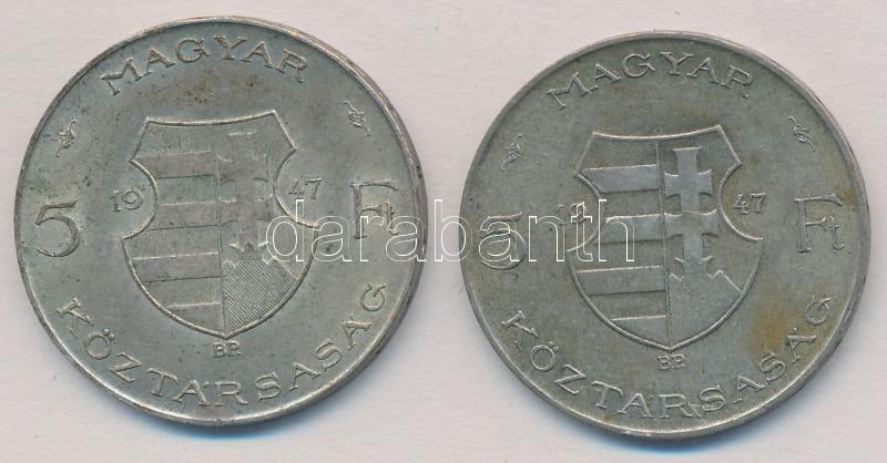 Leírás: 1947. 5Ft Ag "Kossuth" (2x) T:2-,3 patina