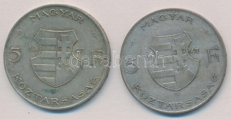 Leírás: 1947. 5Ft Ag "Kossuth" (2x) T:2-,3 patina