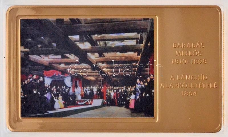 Leírás: 2014. "A magyar festészet remekművei / Barabás Miklós 1810-1898 / A Lánchíd alapkőletétel 1864" aranyozott, multicolor Cu emlékérem (35x60mm) T:PP