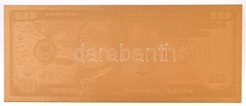 Leírás: Amerikai Egyesült Államok 1999. 10$ "Federal Reserve Note" aranyozott bankjegy replika T:I