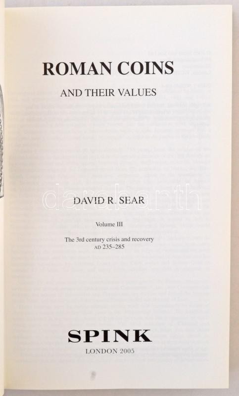 David R. Sear: Roman coins and thier values I-III. London, 2000-2005. ... https://www.darabanth.com/hu/327-Gyorsarveres/327.0/Numizmatika/Numizmatikai-irodalom~2000002/David-R-Sear-Roman-coins-and-thier-values-I-III-London-2000-2005-Szep-allapotban~II1821623