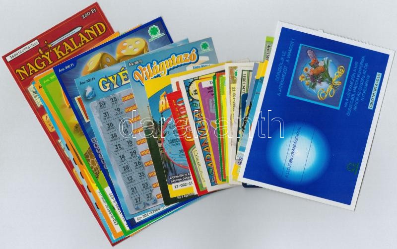 Leírás: ~1990-2000. 31db-os sorsjegy tétel, közte egy darab "MINTA", a többi használt T:II