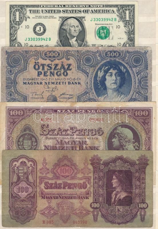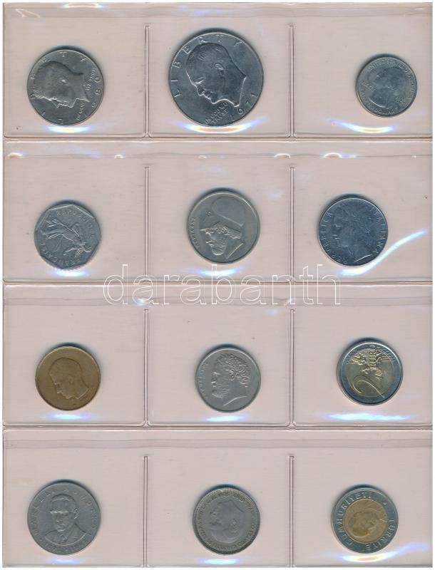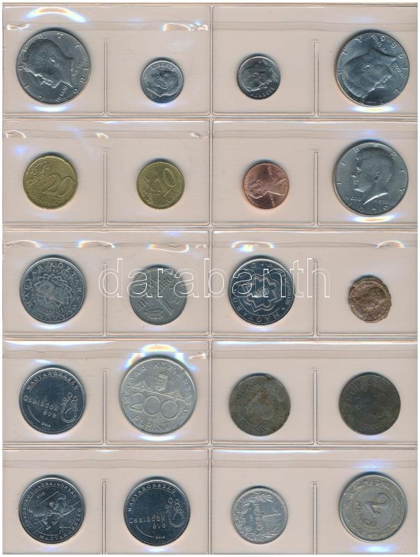 Mixed: 191pcs of Hungarian and foreign coin lot, in folder, with one roman coin + 7pcs of banknotes, 6pcs of Pengő and a US Dollar banknote C:mixed
