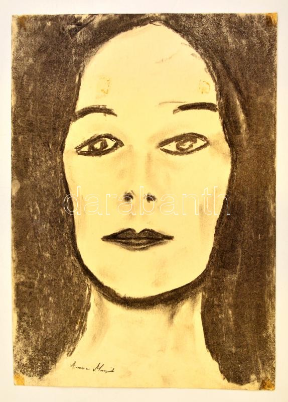 Anna jelzéssel: Női fej. Szén, papír, 42×29 cm https://www.darabanth.com/hu/328-Gyorsarveres/328.0/Festmeny-mutargy-papirregiseg-egyeb/Festmenyek-es-grafikak~1000001/Anna-jelzessel-Noi-fej-Szen-papir-42C39729-cm~II1829783
