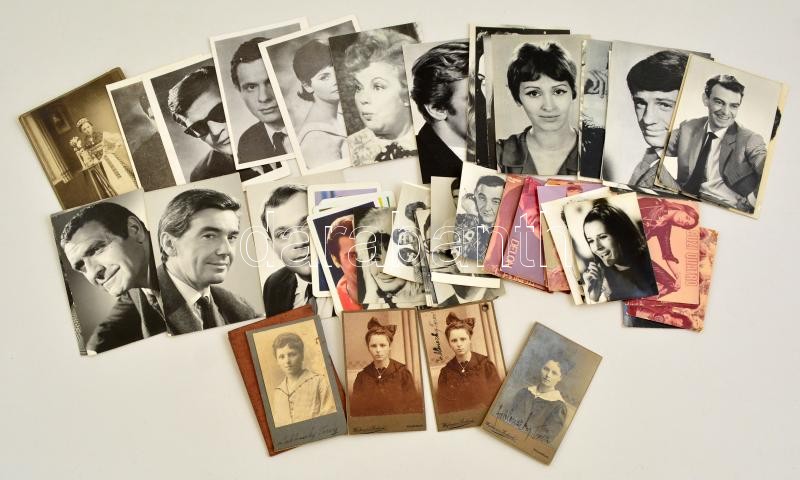Leírás: Vegyes fotó tétel, keményhátú portréfotók, színészek fotói, kb. 67 db, 9×6 és 16×11 cm