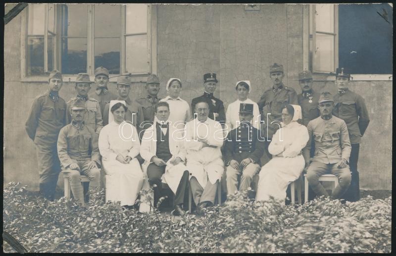 cca 1914-1918 Katonakórház ápolói és ápoltjai, fotólap, 9×14 cm https://www.darabanth.com/hu/328-Gyorsarveres/328.0/Festmeny-mutargy-papirregiseg-egyeb/Militaria~1000028/cca-1914-1918-Katonakorhaz-apoloi-es-apoltjai-fotolap-9C39714-cm~II1825828