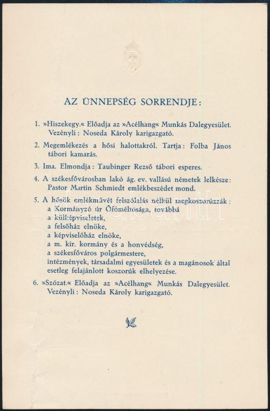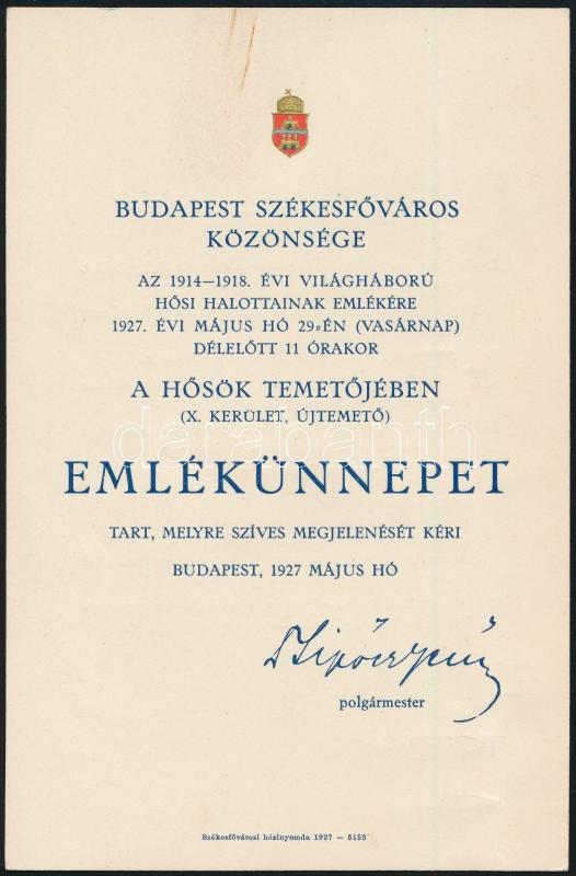 Leírás: 1927 Bp., Meghívó a Hősök temetőjében rendezendő emlékünnepélyre
