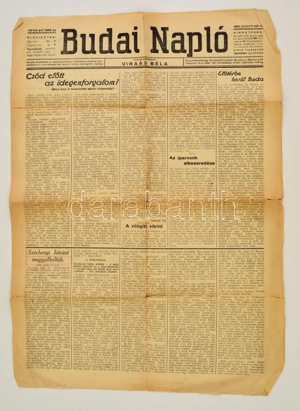 1931 a Budai Napló 28. évf. 1056. lapszáma, érdekes hírekkel, írásokka... https://www.darabanth.com/hu/328-Gyorsarveres/328.0/Festmeny-mutargy-papirregiseg-egyeb/Nyomtatvanyok~1000030/1931-a-Budai-Naplo-28-evf-1056-lapszama-erdekes-hirekkel-irasokkal~II1825741