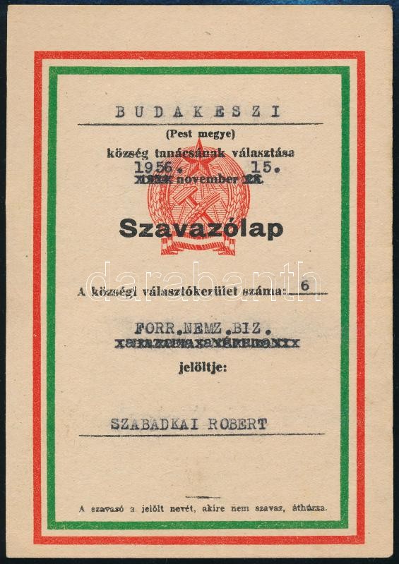 Leírás: 1945 MSZDP választási gyűlés meghívó + 1956 Budakeszi tanácstag választás szavazólapja a forradalom ideje alatt.