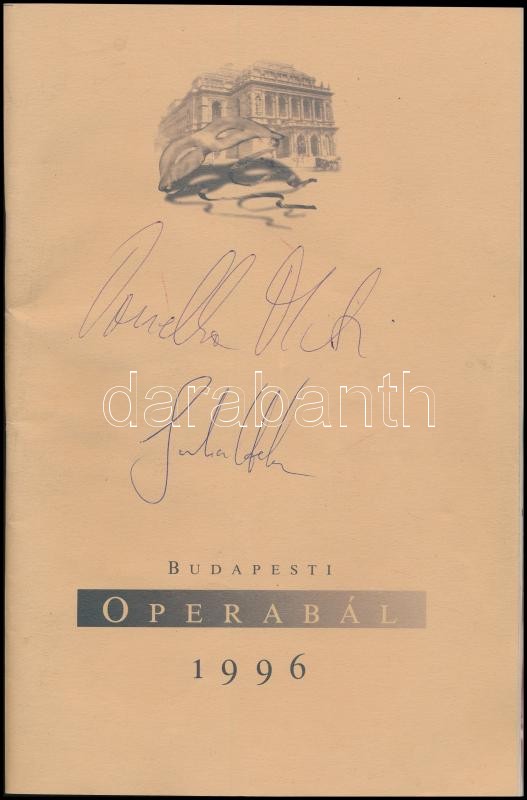 1996-1997 A Budapesti Operabál prospektusa, belépőjeggyel, tombolajeggyel, táncrenddel, a prospektuson Ornella Muti és Sascha Hehn színészek aláírásával