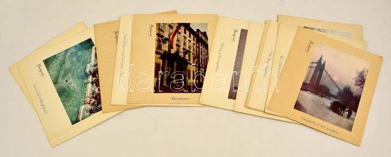Leírás: cca 1942 Budapest 14 képet tartalmazó mappa a fő látványosságokról. 23x20 cm A képeken kézzel írt feliratozás