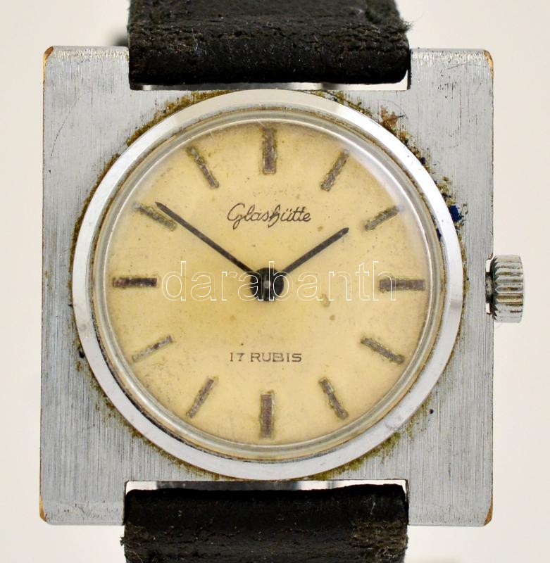 Leírás: Glashütte négyzet alakú 17 köves mechanikus karóra, működik