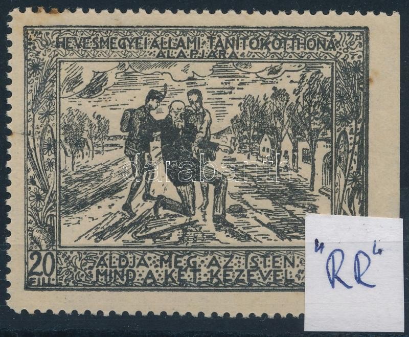 Leírás: 1910 Heves megyei állami tanítók otthona alapjára 20f adománybélyeg ,,RR"