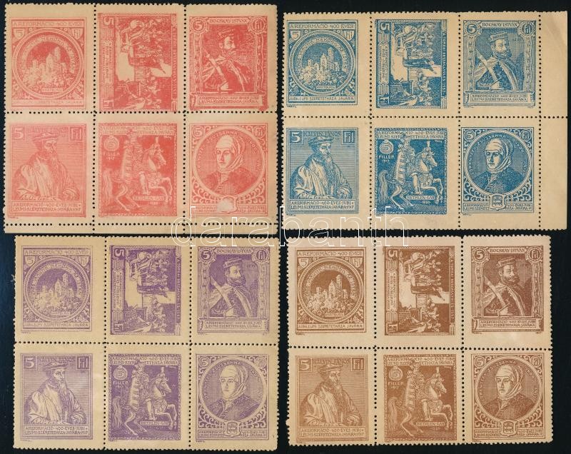Leírás: 1919 400 éves a reformáció 4 db félbetépett levélzáró 12-es ív (apró szakadás a bélyegen)