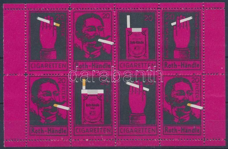 Cigaretta reklámbélyeg kisív https://www.darabanth.com/hu/328-Gyorsarveres/328.0/Festmeny-mutargy-papirregiseg-egyeb/Parafilatelia~1000015/Cigaretta-reklambelyeg-kisiv~II1831769