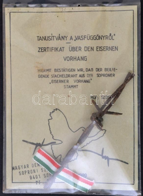 1989 Sopron, darab a vasfüggönyből, a Páneurópai piknik tanúsítványáva... https://www.darabanth.com/hu/328-Gyorsarveres/328.0/Festmeny-mutargy-papirregiseg-egyeb/Tortenelmi-dokumentumok-keziratok-erdekessegek~1000018/1989-Sopron-darab-a-vasfuggonybol-a-Paneuropai-piknik-tanusitvanyaval~II1829756