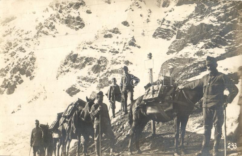 Lőszerutánpótlás szállítás, oszták-magyar katonák a hegyekben / WWI K.... https://www.darabanth.com/hu/328-Gyorsarveres/328.0/Kepeslapok/Katonai~2000074/Loszerutanpotlas-szallitas-osztak-magyar-katonak-a-hegyekben-WWI-KuK-military-ammunit~II1827273