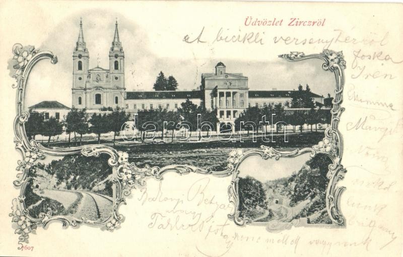 1900 Zirc, Apátság. Art Nouveau, floral (EK) https://www.darabanth.com/hu/328-Gyorsarveres/328.0/Kepeslapok/Magyarorszag~2000005/1900-Zirc-Apatsag-Art-Nouveau-floral-EK~II1826290