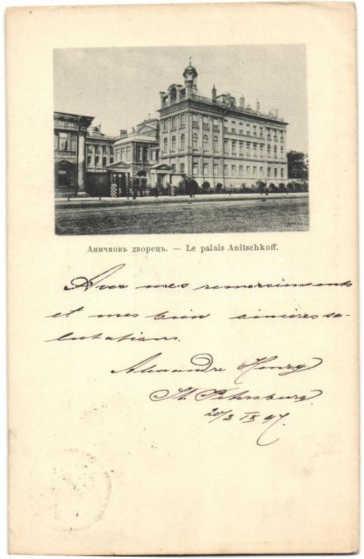 Leírás: 1897 (Vorläufer!) Saint Petersburg, Le palais Anitschkoff / Anichkov palace