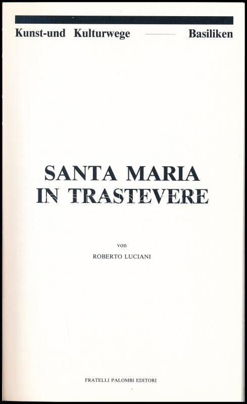 2 db német nyelvű művészettörténeti ismertető: Luciani, Roberto: Santa Maria in Trastevere (Roma, 1987); Filitz, Hermann: Katalog der weltlichen und der geistlichen Schatzkammer (Wien, 1961). Papírkötésben, jó állapotban.