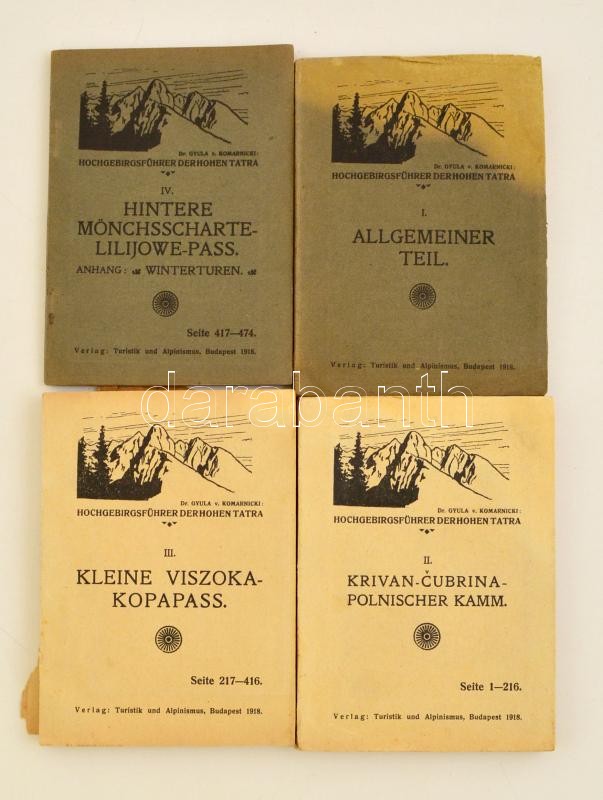 Hochgebirgsführer der hohen Tatra I-IV. Bp., 1918, Turistik und Alpini... https://www.darabanth.com/hu/328-Gyorsarveres/328.0/Konyvek/Konyvek-Utazas-helytortenet~1500001/Hochgebirgsfuhrer-der-hohen-Tatra-I-IV-Bp-1918-Turistik-und-Alpinismus-Papirkotes-koteten~II1829230