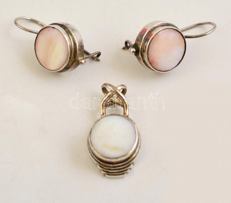 Ezüst(Ag) fülbevaló és medál szett, gyöngyházzal, jelzett, bruttó: 14,... https://www.darabanth.com/hu/328-Gyorsarveres/328.0/Nemesfem-Disztargyak-Orak-es-Ekszerek/Nemesfem-Disztargyak-Orak-es-Ekszerek~1000032/EzustAg-fulbevalo-es-medal-szett-gyongyhazzal-jelzett-brutto-14-3-g~II1830845