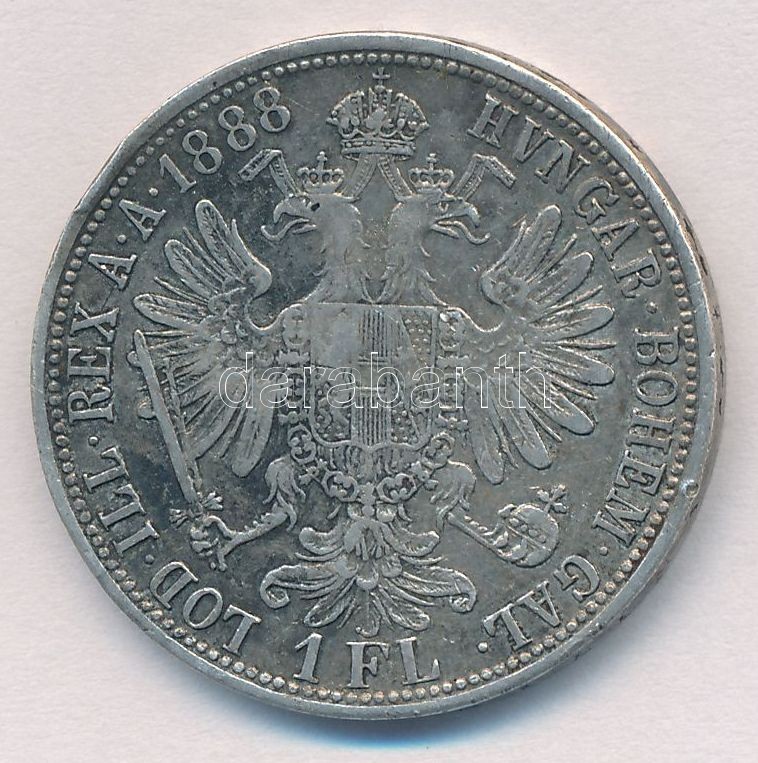 Austria 18... https://www.darabanth.com/hu/328-Gyorsarveres/328.0/Numizmatika/Kulfoldi-fem-es-ezustpenzek~2500012/Ausztria-1888-1Fl-Ag-Ferenc-Jozsef-T2-2-ph-Austria-1888-1-Florin-Ag-Franz-Joseph-CXF-VF-~II1826849