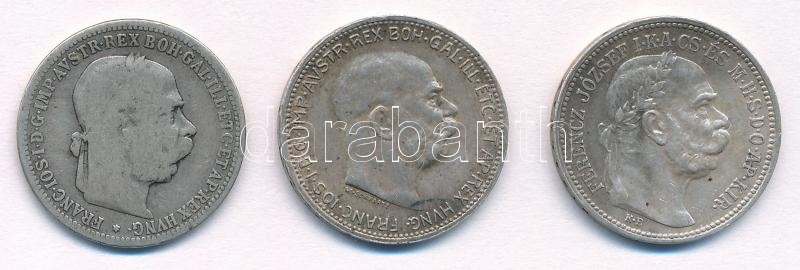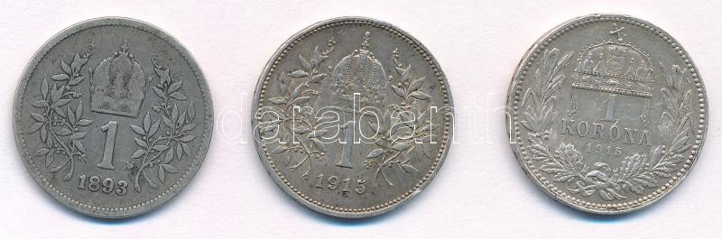 Ausztria 1893. 1K Ag + 1915. 1K Ag + Magyarország 1915KB 1K Ag "Ferenc József" T:1-,3